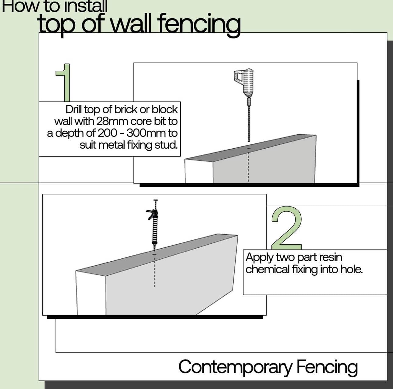 Installation is straightforward for experienced DIYers and professionals, but due to the structural nature of fixing a fence on top of a wall, we recommend professional installation where possible.