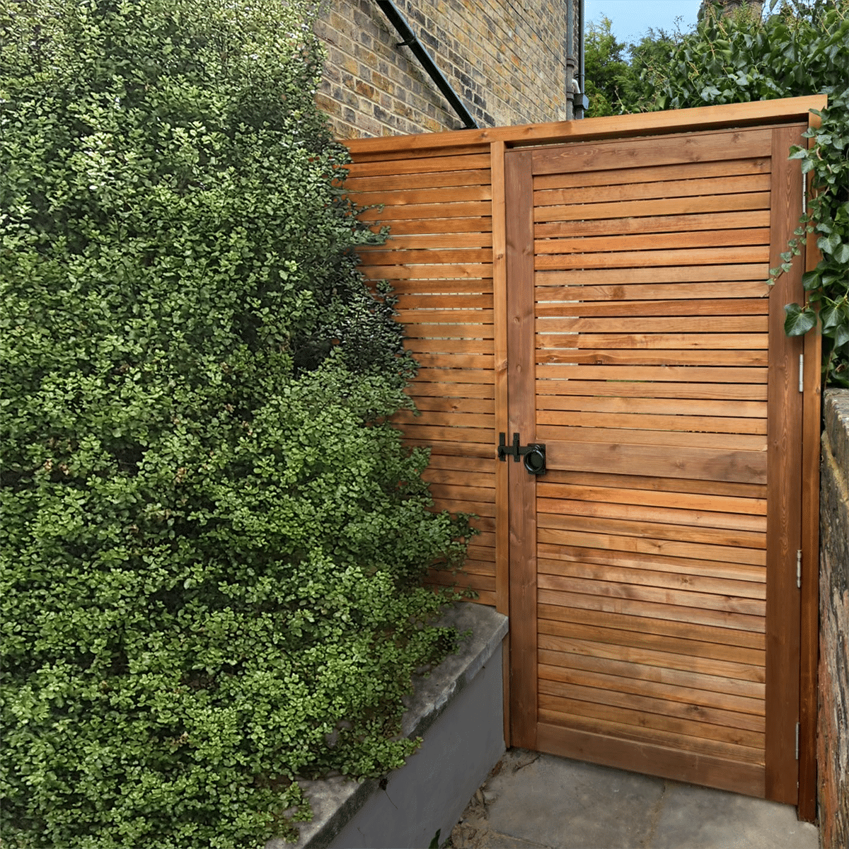 Ideal for both front and rear gardens. This horizontal slatted gate is available in a range of standard sizes and can also be built to bespoke requirements. If you are looking for a gate to secure your garden and add a touch of class at a great price then look no further. The contemporary design of this gate is perfect to give your garden space that finishing touch.