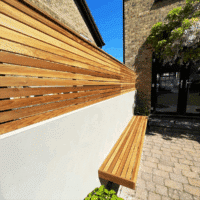 Our slatted garden bench offers a stylish, practical solution for contemporary outdoor settings, making it a popular choice among garden designers. Ideal for bespoke garden seating areas, this bench enhances modern garden layouts, delivering both style and ease of installation. With hidden brackets, it can be installed as a floating garden bench, creating a sleek, minimalist look. Alternatively, it can be mounted on walls for a sturdy seating option. Whether you’re looking to make an impact in your garden or create a relaxing seating area, our floating garden benches make achieving a high quality finish simple. Custom sizes are available to suit your garden perfectly, alongside standard options.